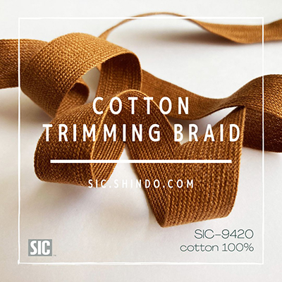 S.I.C.定番商品は、プレーンな無地テープや意匠性のあるブレード・ニット・ストレッチテープ・パイピング・トリミングレースなど、幅広い商品レンジを持っています。サスティナブルを意識したものつくりにも取り組んでおり、リサイクルポリエステル素材やエコテックス 認証品番の推奨も行なっています。
