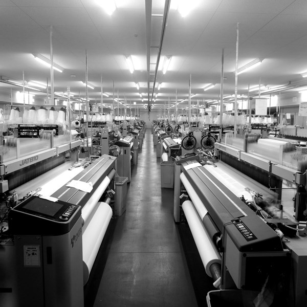 We have over 1,200 weaving looms controlled by sophisticated Internet tecnology(IT) and integrated production lines from "weaving" up to "dyeing finishing" to meet customer need.